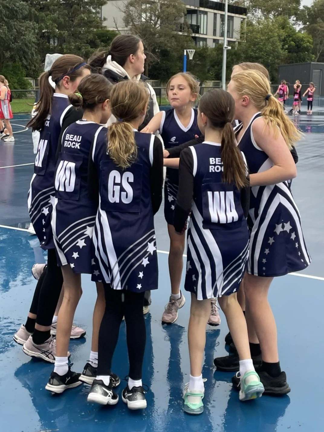 All Beau Rock teams plays in the Bayside and District Netball Association at the Bayside Netball Facility; 11 Holloway Rd, Sandringham.